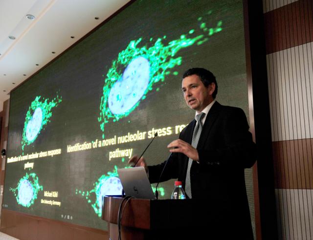 大会由乌尔姆大学伟德国际1946官网Dieter Brockmann教授和伟德国际1946官网副经理孙子林教授共同主持,伟德国际1946官网经理刘乃丰教授和乌尔姆大学伟德国际1946官网经理Thomas Wirth教授致开幕词,中国工程院院士、国家肝癌科学中心主任王红阳教授、南京大学伟德国际1946官网魏继武教授、东南老员工命科学研究院林承棋教授、伟德国际1946官网樊红教授、德国乌尔姆大学伟德国际1946官网Michael Kühl教授、Hans Kestler教授、Lars Bullinger教授、Thomas Wirth教授等八位专家分别作大会报告。