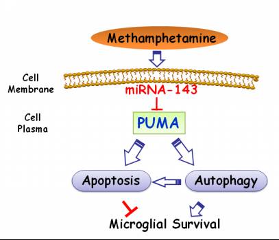 公司姚红红教授的论文“Mir143-BBC3 cascade reduces microglial survival via interplay between apoptosis and autophagy: Implications for methamphetamine-mediated neurotoxicity”于2016年5月16日被著名期刊Autophagy发表。该期刊是报道关于细胞自噬研究的国际权威刊物(5年影响因子为11.958)。本研究探讨miRNA-143和促凋亡蛋白PUMA调控小胶质细胞的功能。临床研究发现甲基苯丙胺成瘾者脑内存在大量活化的小胶质细胞,而小胶质细胞的过度活化又可以导致细胞的死亡。作为促凋亡蛋白PUMA,基因敲除PUMA反而加重甲基苯丙胺引起的小胶质细胞数目减少。围绕这一“PUMA矛盾现象”而展开系列研究,发现PUMA在促进小胶质细胞凋亡的同时也促进细胞自噬,而自噬促进细胞存活。敲除PUMA减少小胶质细胞凋亡,同时也降低小胶质细胞自噬,降低细胞存活,所表现出净效应是小胶质细胞存活下降。另一有趣的发现是PUMA的表达在转录后水平受miR-143调节,anti-Mir143能够通过上调PUMA调节细胞的自噬和凋亡,减轻甲基苯丙胺引起的小胶质细胞的死亡。在整体的动物模型上,anti-Mir143脑微注射进海马脑区,能够缓解小鼠脑内甲基苯丙胺导致的小胶质细胞减少,该研究结果在Mir143的基因敲除小鼠上也得到了进一步的证实。