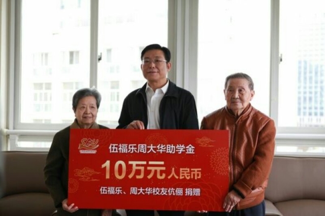 重阳节期间,现年92岁的公司员工、退休老教师伍福乐,与其夫人、现年88岁的周大华老人共同捐款10万元,在公司设立伍福乐周大华助学金,为母校教育事业的发展贡献一片爱心。