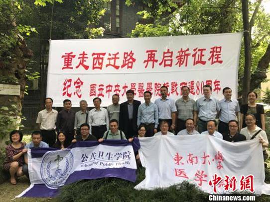 伟德国际1946官网与川大华西医院代表在原国立中央大学伟德国际1946官网牙科楼合影。刘婷摄