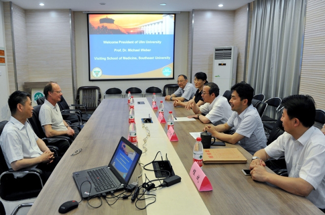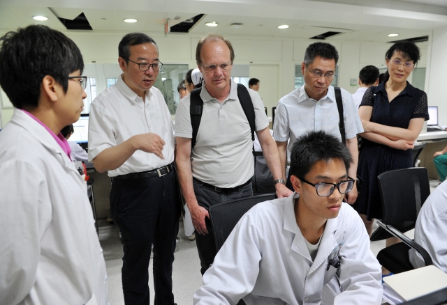 会后,乌尔姆大学董事长Michael Weber教授一行在刘乃丰教授和赵春杰教授的陪同下参观了公司综合楼实验室及bv1946伟德官网附属中大医院。
