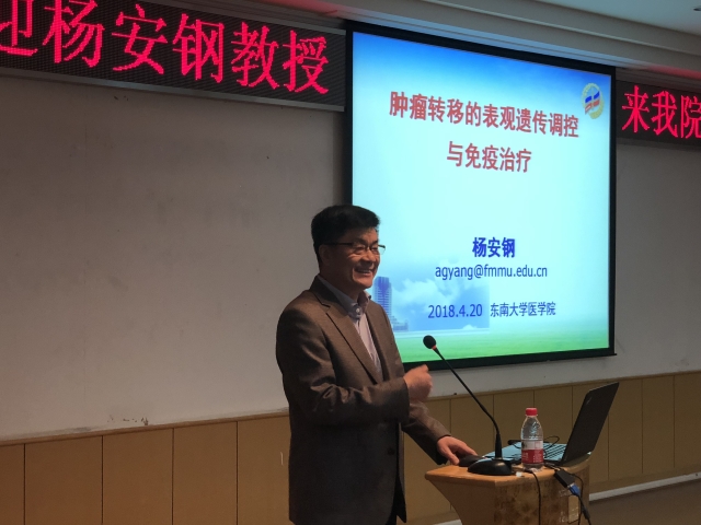 4月20日下午3时,应伟德国际1946官网邀请,第四军医大学杨安钢教授在丁家桥校区综合楼二楼学术报告厅作了题为《肿瘤转移的表观遗传调控与免疫治疗》的学术讲座。伟德国际1946官网副经理王立新和副经理赵春杰两位教授主持参加了本次讲座。伟德国际1946官网学科带头人,青年教师及研究生150人左右聆听了讲座。