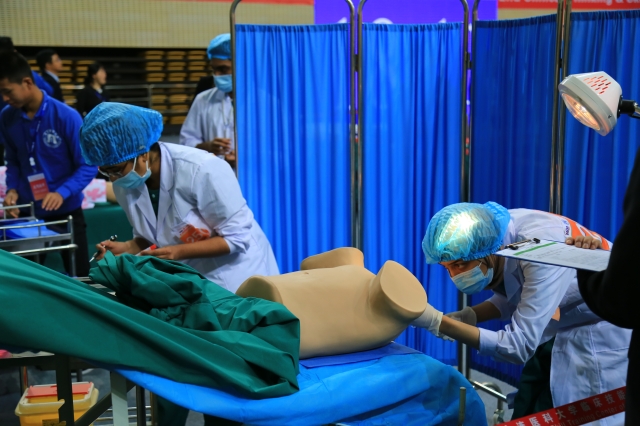 本次竞赛分为预赛和决赛,竞赛方式为赛道式。竞赛内容涵盖内、外、妇、儿、急救等科目,决赛模拟的是车祸的现场急救内容。所有的竞赛题目均为英文临床真实病例,重点考核来华医学职工的医学临床思维、以患者为中心的人文关怀精神和与患者的沟通技巧和规范化的临床操作。