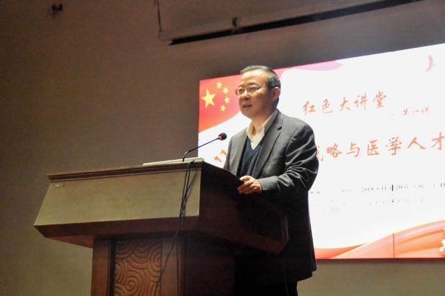 近日,由bv1946伟德官网党委员工工作部、公司党委联合主办,伟德国际1946官网低年级本科生党支部承办的“红色大讲堂”拉开帷幕。2018年11月20日晚6:30,首讲活动在丁家桥校区科技会堂成功举行,该讲座特邀伟德国际1946官网经理刘乃丰带来主题为“健康中国战略与医学人才培养”的精彩报告。来自伟德国际1946官网及公共卫生学院200多名老员工党员、入党积极分子以及各团支部主要员工干部认真聆听了本次报告。