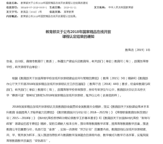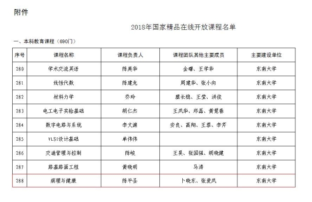 近日,教育部发布《教育部关于公布2018年国家精品在线开放课程认定结果的通知》,公司病理学与病理生理学系团队开设的《病理与健康》荣获“国家精品在线开放课程”认定。这是公司首次荣获该项认定,也是目前教育部认定的江苏省首门、国内第二门病理学科精品在线开放课程,继2016年公司《病理学》被认定为首批国家网络教育精品资源共享课程以来,课程建设再上新台阶。