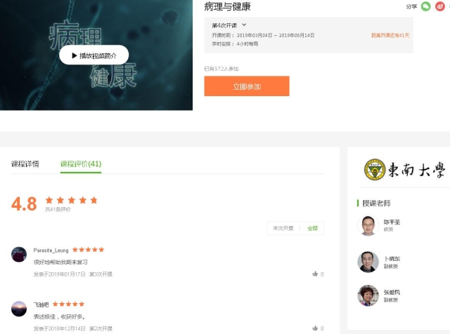 为贯彻和推进《“健康中国2030”规划纲要》、《教育信息化十年发展规划(2011-2020年)》,该课程团队在陈平圣教授的带领之下,多年来积极开展病理学教学资源建设和网络教学改革。《病理与健康》立足于“全民健康,对接深化医改和大健康”的国家发展战略,以培养一流医学人才和普及大众健康知识为根本目标,以病理学基础知识为依托,将人体病变器官标本讲解穿插于教学之中,精心录制了七十余讲在线视频,辅以简洁的临床病例分析,组织员工完成在线测验、考试、讨论和答疑,充分体现了医学桥梁学科的特色。该课程不仅是各类医学相关专业全日制员工在线学习的主干课程,而且作为医学科普服务于社会大众。课程自上线以来,选课人数已超过15000人次。