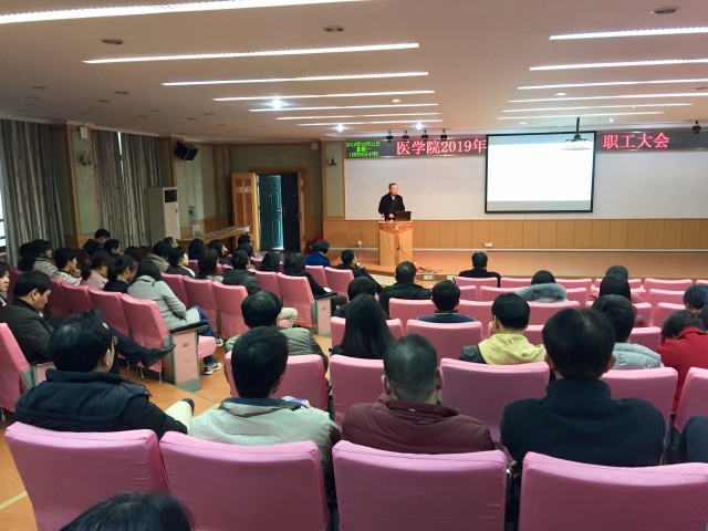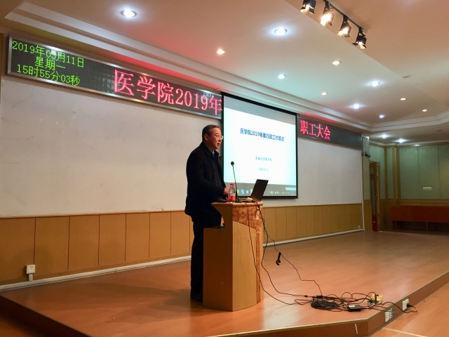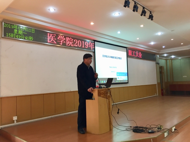 刘经理和谭书记鼓励大家以习近平新时代中国特色社会主义思想为指导,认真贯彻党的十九大精神和全国教育大会精神,牢记立德树人使命,明确医学教育的新使命、新要求,按照大学综合改革方案、一流本科教育行动计划和研究生教育综合改革方案,推进特色医科建设,聚焦双一流建设,全面提升人才培养质量,大力加强人才团队队伍建设,努力实现内涵式发展,全面实现2019年的工作目标。