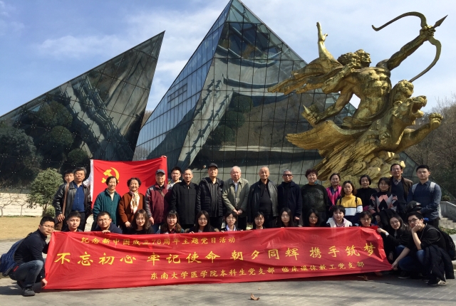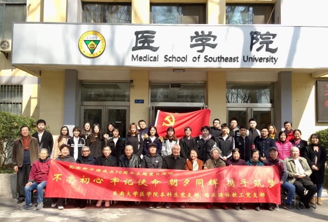 2019年3月15日上午,伟德国际1946官网临床退休党支部与低年级本科生党支部共建仪式在丁家桥校区基一楼一楼会议厅顺利举行。同时,为了纪念新中国成立七十周年,两个党支部携手开展了题为“不忘初心 牢记使命 朝夕同辉 携手筑梦”的主题讨论,讨论结束后一起前往南京抗日航空烈士纪念馆开展主题教育活动。