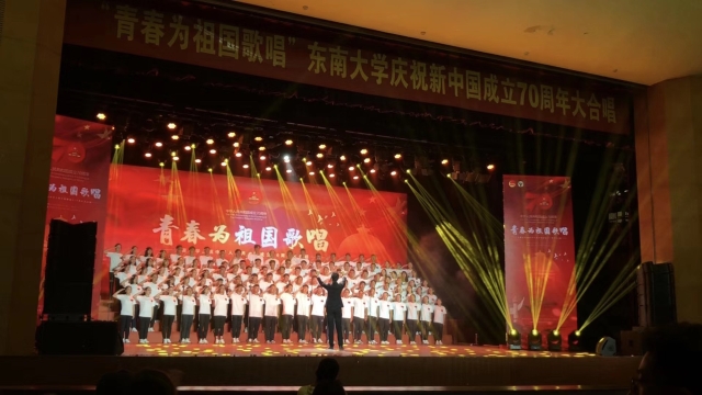 2019 年 9 月 25 日晚,“青春为祖国歌唱”暨bv1946伟德官网庆祝中华人民共和国成立七十周年大合唱于bv1946伟德官网九龙湖校区焦廷标馆剧场隆重举行。