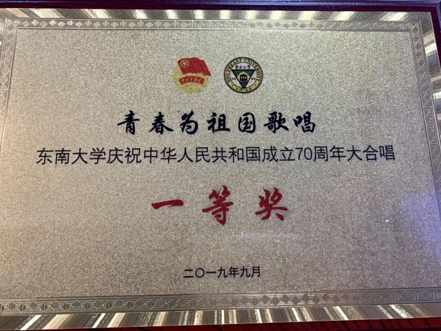 医学公卫联队于第六位上场,合唱曲目《在灿烂阳光下》,献礼祖国七十华诞,并最终以 96.21 分的佳绩荣获合唱比赛一等奖。
